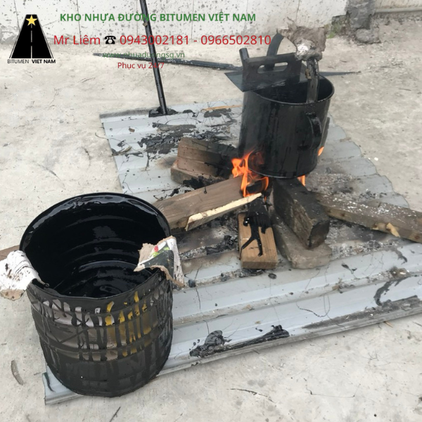 - Nấu chảy: Sử dụng nồi hoặc thùng chuyên dụng để nấu chảy nhựa đường đến khi khói trắng bốc lên.